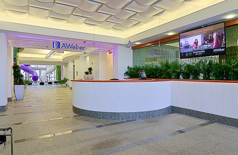 AWeber wanted an easy-to-use working environment that was inuititve, innovative and LEED certified. Collaborative technology was required for all meeting spaces, and the technology needed to connect with the building automation system.
