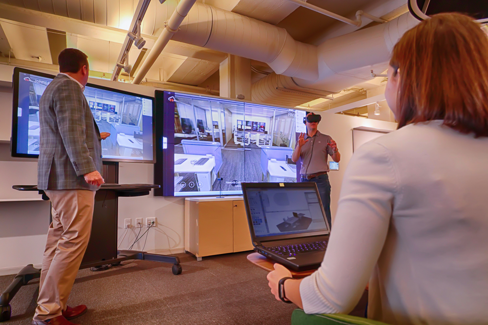 Price Modern partnered with Cenero to create a new technology innovation center, featuring an interactive video wall in the heart of the showroom. Utilizing Bluescape software and virtual reality, Price Modern can improve their customer experience – making changes to designs on the fly, showing layouts in 3D and accomplishing in a few hours what used to take months.